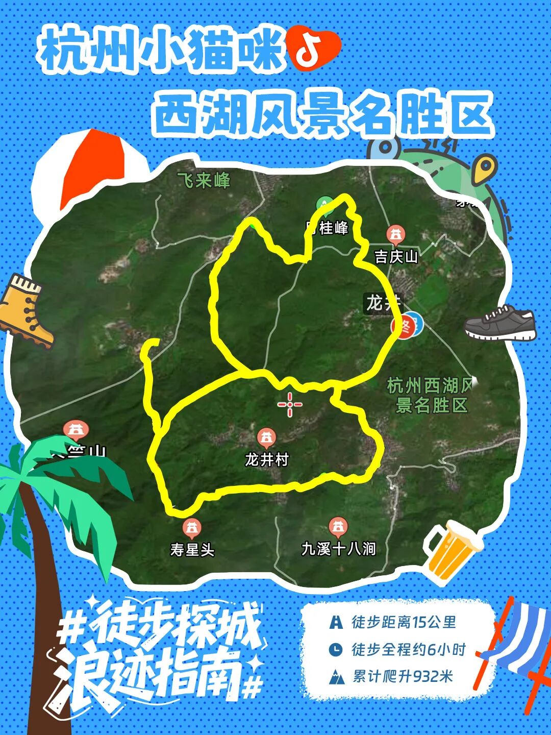 轨迹起点:吉庆山茶庄;轨迹终点:鮨驹板前料理(龙井店),建议自驾前往走西湖步道可以抵达目的地。