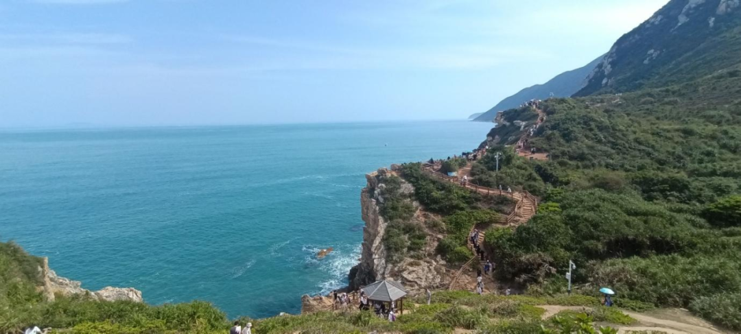 行走鹿雁科考线,抵达鹿咀码头(鹿嘴山庄):从山脊缓缓而下,这条线将您引向深圳的“天涯海角”。沿着海边悬崖蜿蜒前行,脚下是惊涛拍岸,眼前是碧海无垠,周星驰电影《美人鱼》的取景地更为此地增添了梦幻色彩。